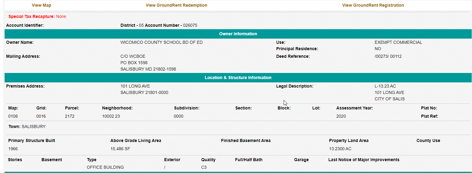 Administration stated that the board meeting would have to be conducted on their terms, and that the WCBOE would postpone the meeting if parents did not comply with the limitation of persons to enter the meeting and their masking requirements. According to the tax records, 101 Long Avenue does not belong to WCPS. It is an old building that is entrusted to the WCBOE by Wicomico County. Our Board is elected by the people, and therefore it's the people's building. The tax records also indicate that the building is classified as "Office Building" (not a school or school facility). All of this was challenged by parents. Deputies were instructed to ignore the law and defend the school system that hired them to be there.